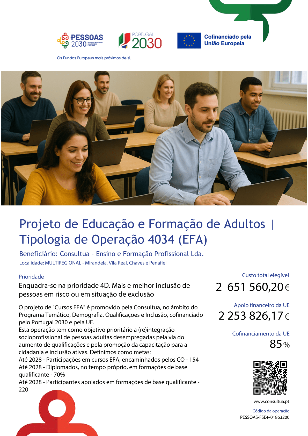 Projeto Cursos EFA – Tipologia 3.3 – Cursos Educação e Formação de Adultos