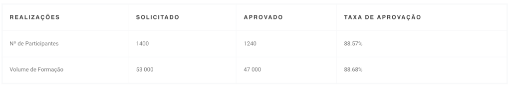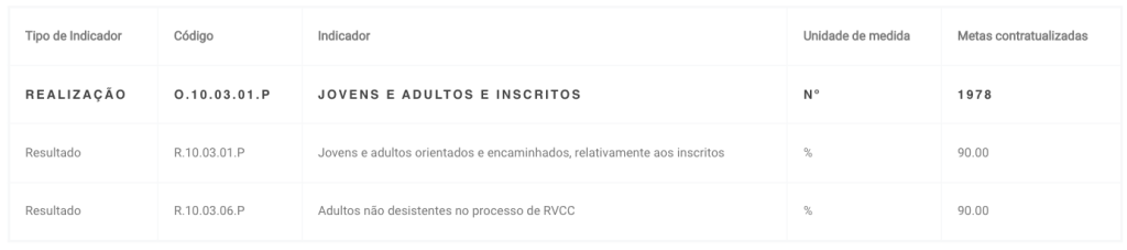 - Meta contratualizada de 657 participantes de grupos desfavorecidos, incluindo DLD com baixas qualificações, em formação modular certificada.