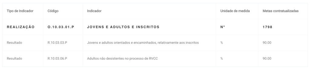 Resultado R.10.03.11.P – Adultos não desistentes do processo de RVCC (em processo RVCC ou certificados decorrente desse processo) % 90.00